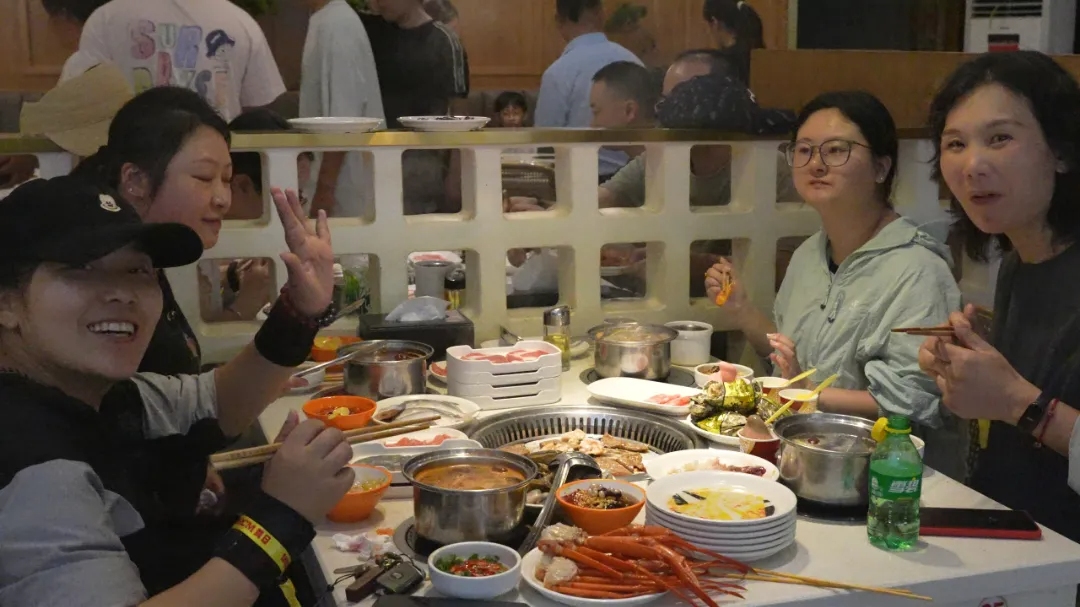 登山后的烧烤火锅盛宴将欢乐推向高潮。大家分工协作,围坐分享美食与登顶喜悦。烟火气中,团队情谊愈发温暖浓厚。